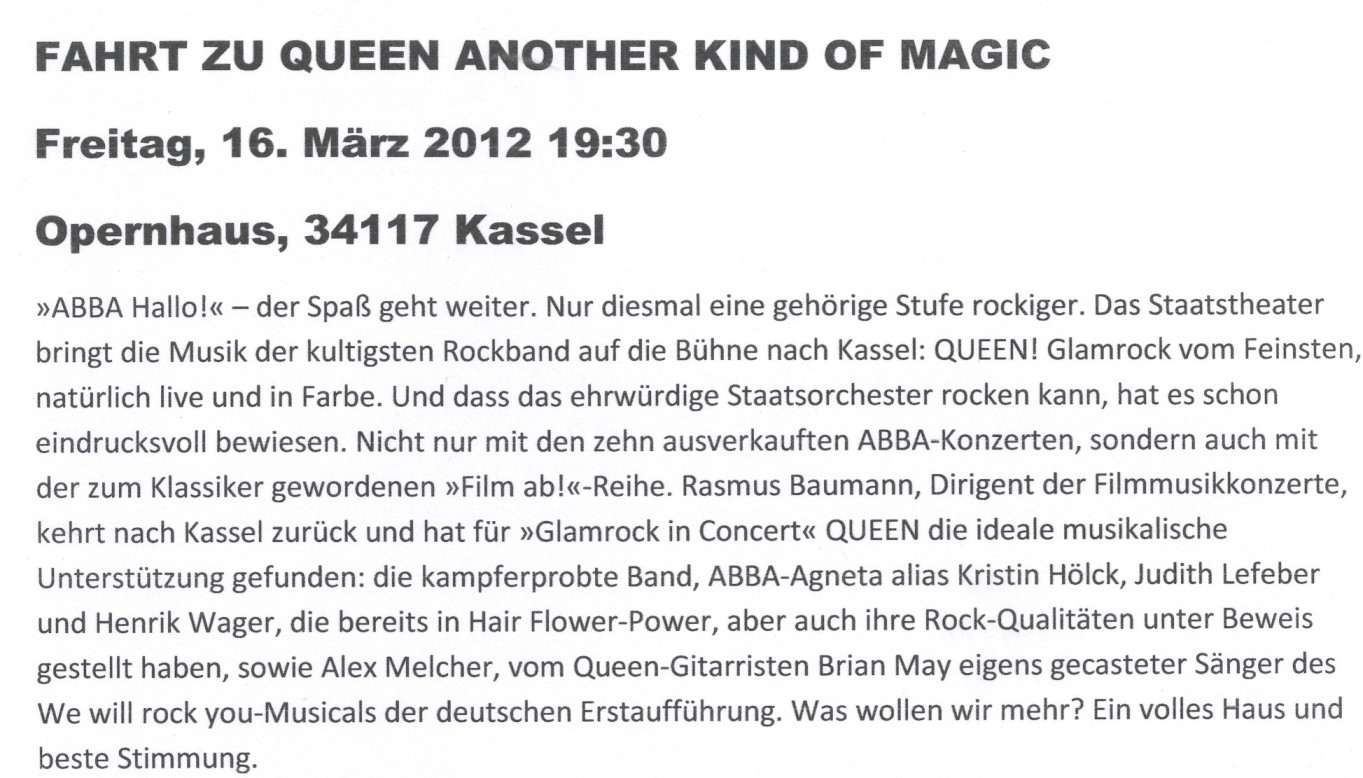 14.06.2013 : Fahrt zu "Swing in Concert" im Staatstheater Kassel