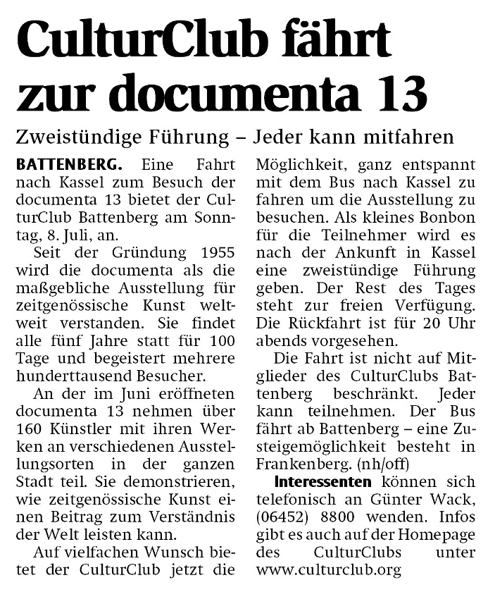 08.07.2012 : Fahrt zur Documenta nach Kassel