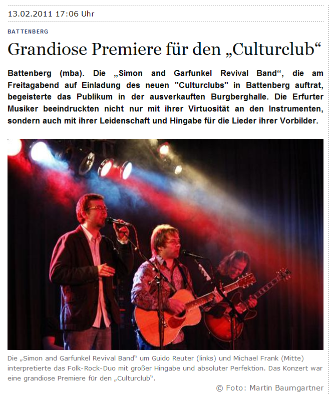 11.02.2011 Simon & Garfunkel Revival Band live in Battenberg