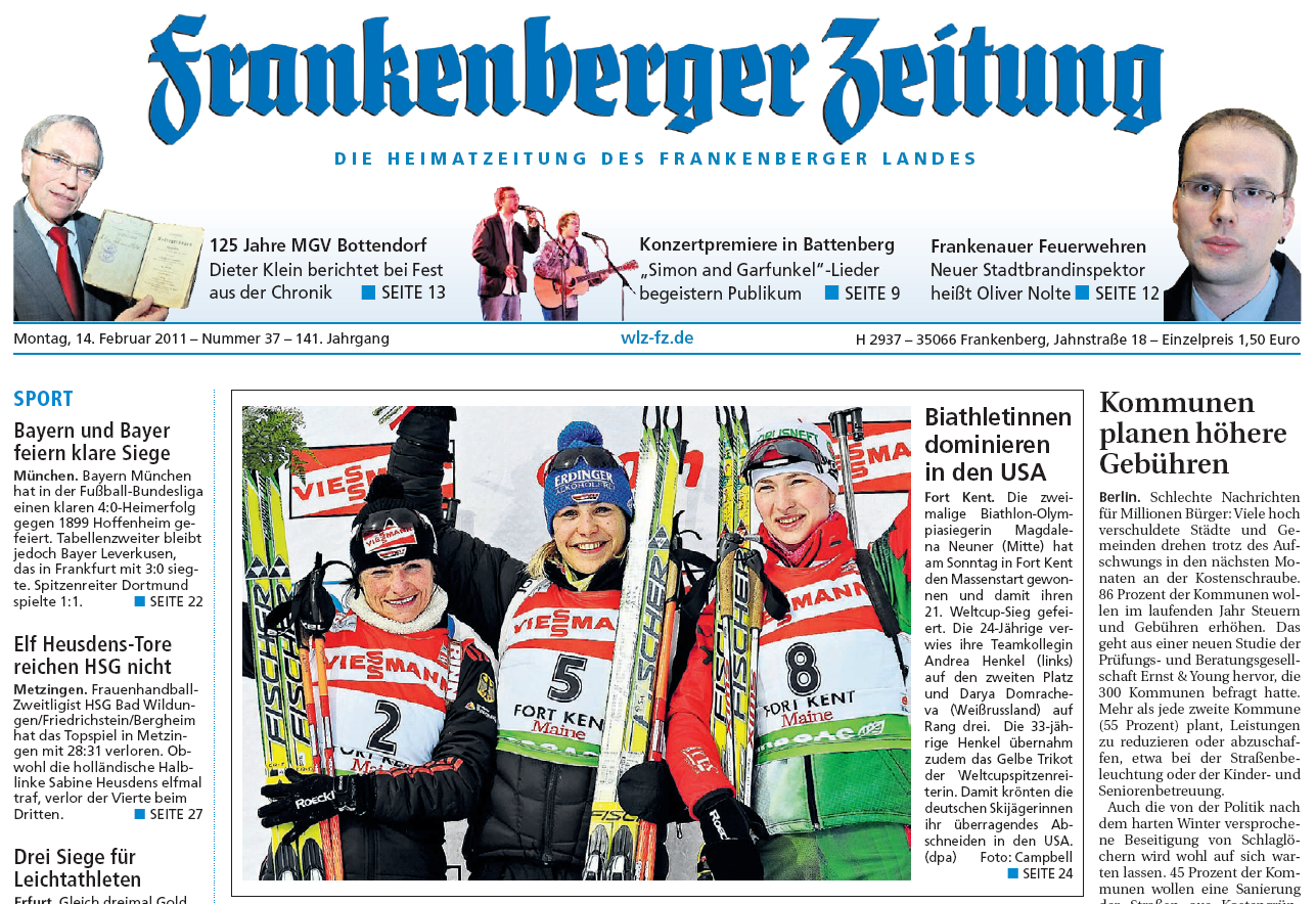 HNA vom 13.02.2011 - Titelseite HNA vom 13.02.2011 - Internet