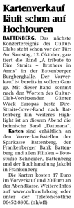 Kostenlose Karten (Veranstaltung für max. 300 Personen) gibt es beim Fotostudio Dagmar Schneider in Battenberg.