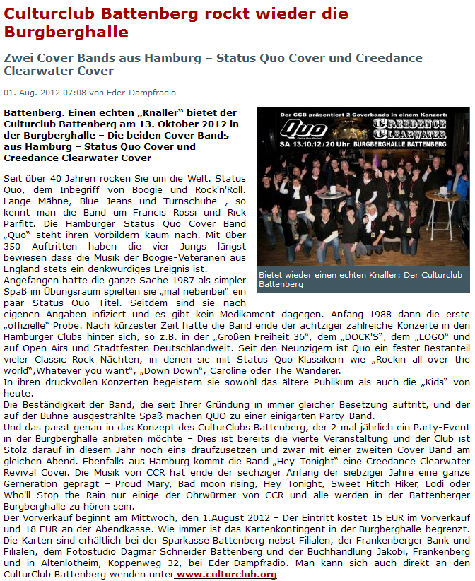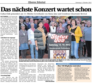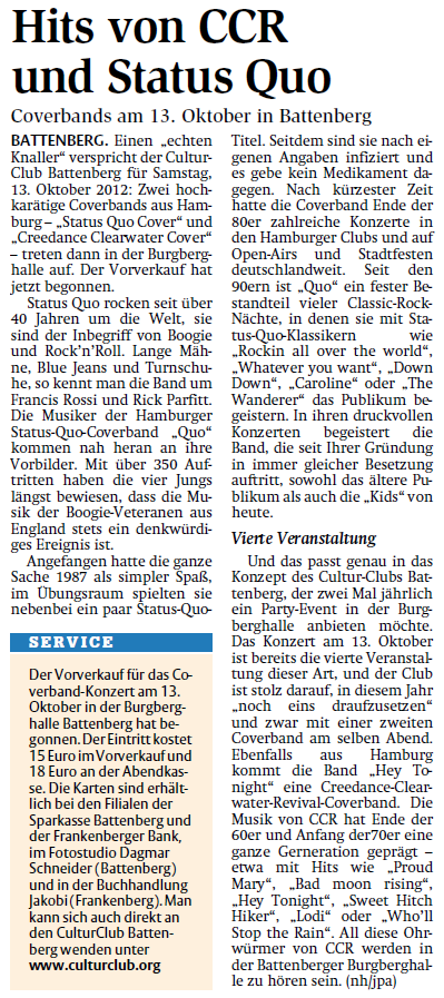 13.10.2012 : CCR und Status Quo live in Battenberg