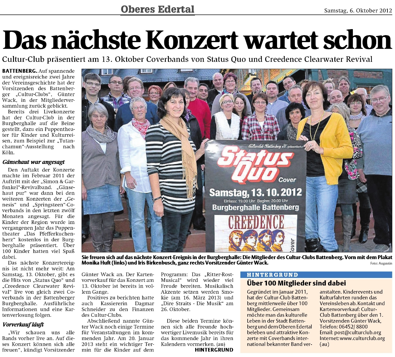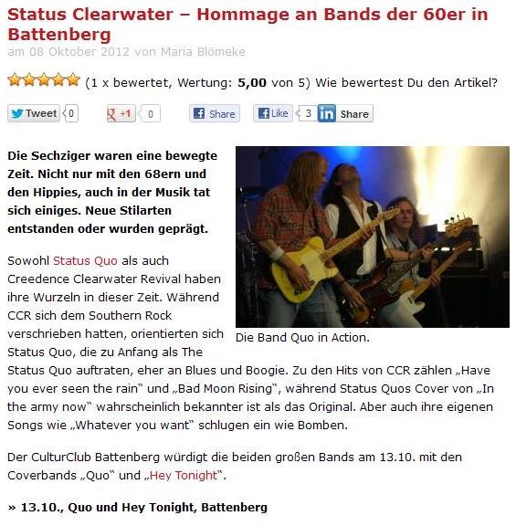 Schon mal vormerken : Samstag, 13.10.2012 : STATUS QUO und CCR
