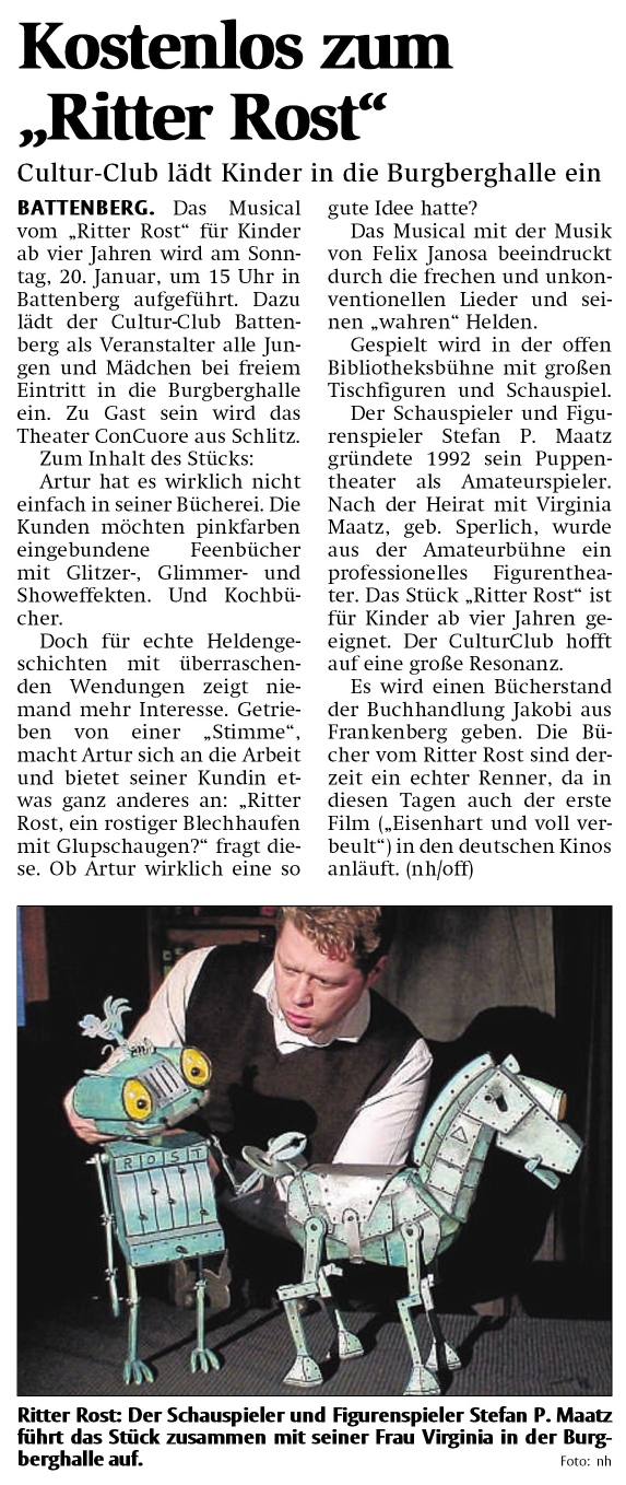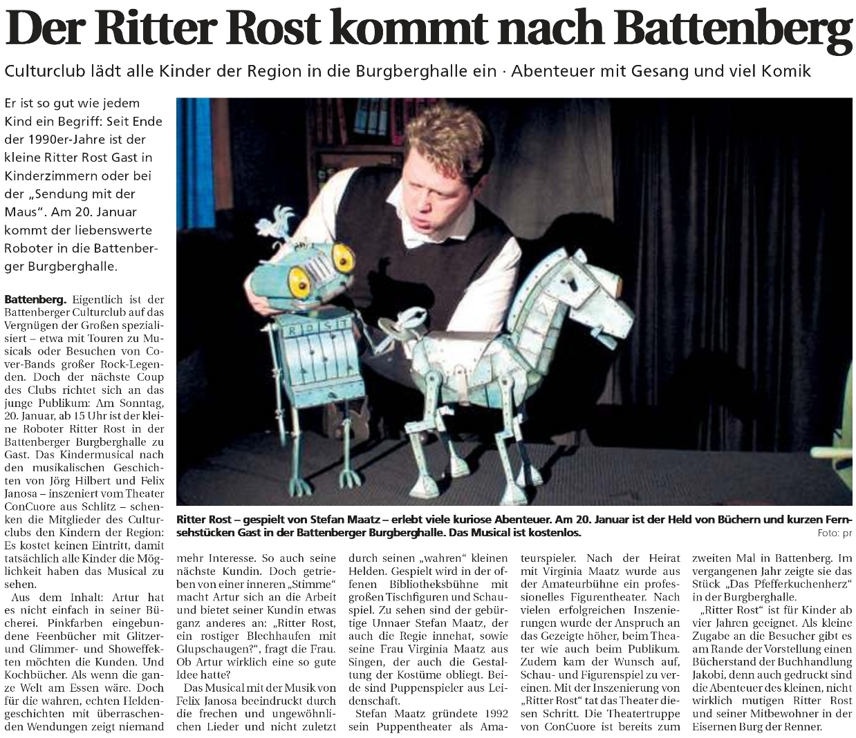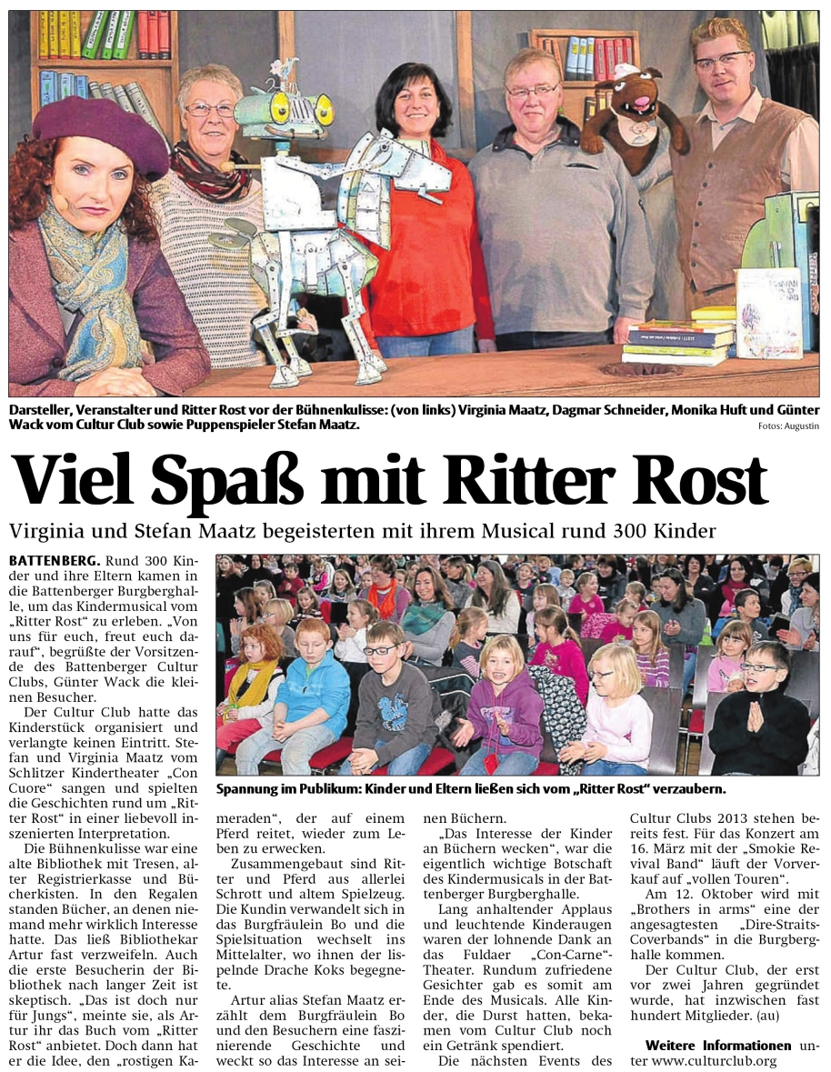 20.01.2013 : Kindermusical (Eintritt frei) RITTER Rost in der Burgberghalle