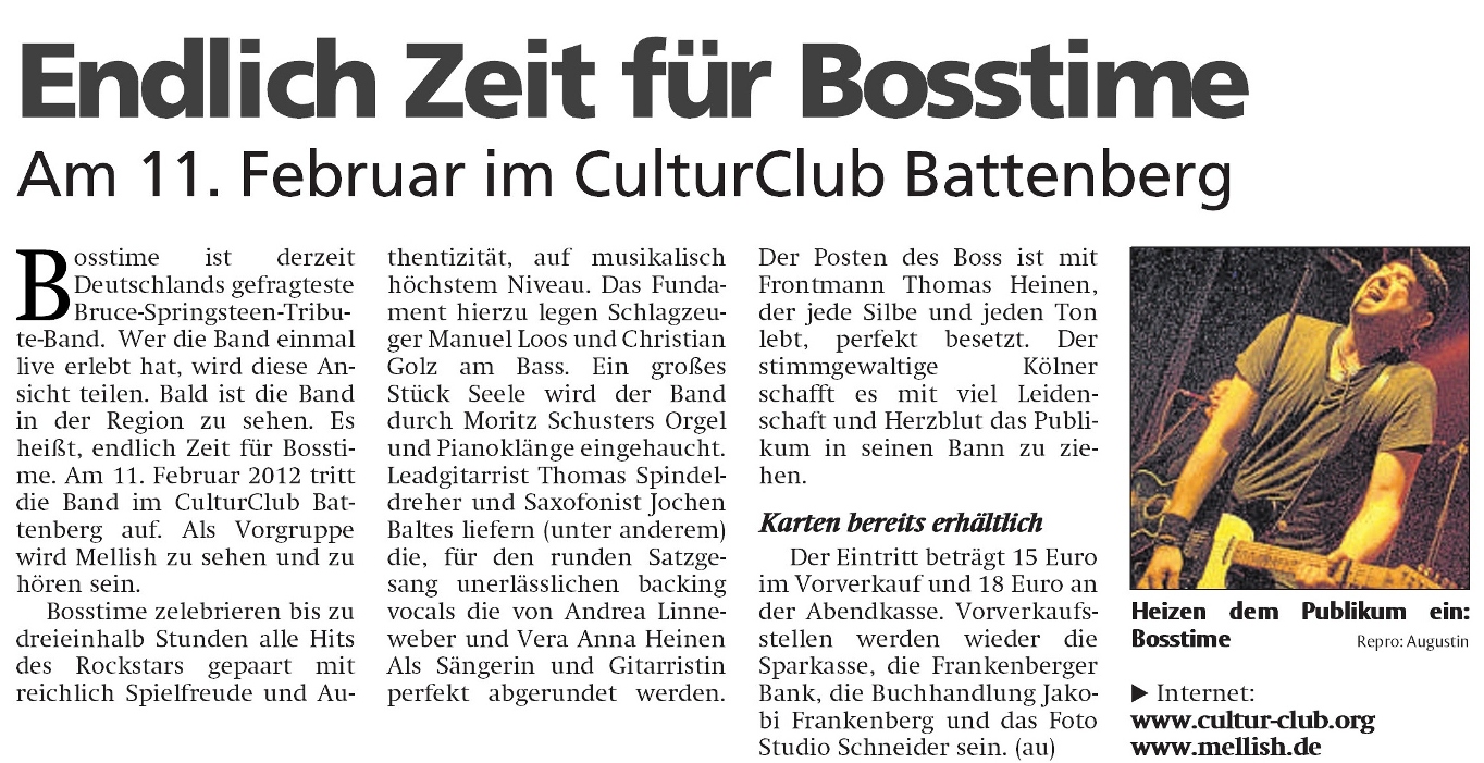 Schon mal vormerken : Samstag, 11.02.2012 : Der Boss kommt !!!