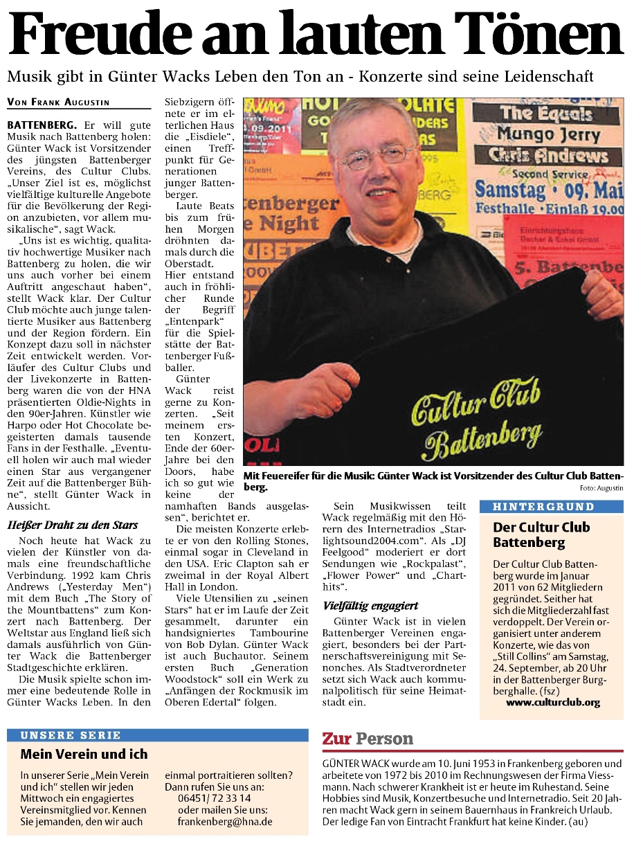 Portrait Günter Wack (HNA - Wir im Verein) vom 21.09.2011